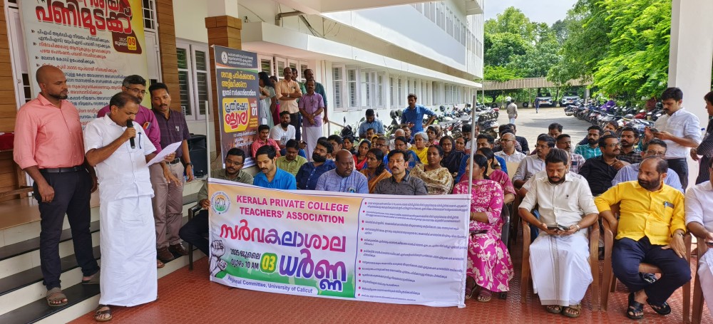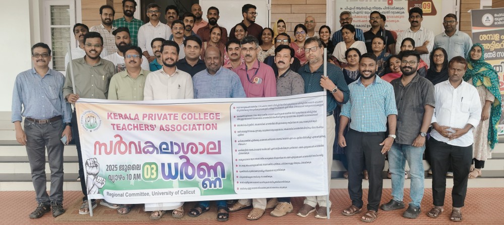 തേഞ്ഞിപ്പാലം: നാലു വർഷ ബിരുദ പ്രോഗ്രാമിന്റെ റെഗുലേഷൻ ഭേദഗതി വിദ്യാർത്ഥി വിരുദ്ധ തീരുമാനമാണെന്നും സർവകലാശാല അക്കാദമിക വിഷയങ്ങളിൽ ഉന്നത വിദ്യാഭ്യാസ കൗൺസിലിന്റെ അനാവശ്യ ഇടപെടൽ അവസാനിപ്പിക്കണം എന്നും ആവശ്യപ്പെട്ടു കേരള പ്രൈവറ്റ് കോളേജ് ടീച്ചേർസ് അസോസിയേഷൻ (കെ പി സി ടി എ) സർവകലാശാല ആസ്ഥാനത്തു ധർണ്ണ നടത്തി. കാലിക്കറ്റ് സർവകലാശാലളിലും ഒരു ഡിപ്പാർട്മെന്റിലെ മേജർ പഠിക്കുന്ന വിദ്യാർത്ഥികൾ ആ ഡിപ്പാർട്മെന്റിൽ തന്നെയുള്ള മൈനർ കോഴ്സുകൾ അവ വ്യത്യസ്ത പഠന മേഖലയിൽ ആണെങ്കിൽ എടുക്കാം എന്ന് നാഷണൽ എഡ്യൂക്കേഷൻ പോളിസിയിലും യൂണിവേഴ്സിറ്റി ഗ്രാന്റ്സ് കമ്മീഷൻ ( യൂ ജി സി ) യുടെ നിർദേശങ്ങളിലും അനുവദിച്ചിട്ടുള്ളപ്പോൾ ആണ് സെൽഫ് മൈനർ നൽകുന്നത് അവസാനിപ്പിക്കണം എന്ന് ഉന്നത വിദ്യാഭ്യാസ കൗൺസിൽ നിർദ്ദേശം നൽകിയത് എന്നാൽ 33 വിഷയങ്ങളിൽ വിദ്യാർത്ഥികൾ അവരവരുടെ പഠന മേഖലക്ക് ചേർന്ന മറ്റു പഠനമേഖലകളിൽ നിന്നും മൈനറുകൾ എടുക്കുന്നത് തടയാൻ ഉദ്ദേശിച്ചുള്ള റെഗുലേഷൻ ഭേദഗതിയാണ് പ്രത്യക്ഷമായ ശക്തമായ പ്രതിഷേധം കെ പി സി ടി എ അംഗങ്ങൾ സെനറ്റിൽ ഉന്നയിക്കാൻ കാരണമായത്. എന്നിരുന്നാലും ബോർഡ് ഓഫ് സ്റ്റഡീസിലും അക്കാദമിക് കൗൺസിലിലും വീണ്ടും ചർച്ചക്ക് അനുമതി നൽകാതെ നിലവിലെ സർവകലാശാല ആക്ടിനും സ്റ്റാട്യുട്ടിനും വിരുദ്ധമായ രീതിയിൽ സെനറ്റ് ചെയർ കൂടിയായ വൈസ് ചാൻസലർ ഭേദഗതി അംഗീകരിക്കുന്നതായി പ്രഖ്യാപിച്ചതിനാൽ ചാൻസിലർ കൂടിയായ ഗവർണറെ സമീപിച്ചിരിക്കുന്ന ഘട്ടത്തിലാണ് കെ പി സി ടി എ സംഘടനാ വിദ്യാർത്ഥികളുടെയും അധ്യാപകരുടെയും ക്ഷേമത്തെ പ്രതി പ്രത്യക്ഷ സമരത്തിന് ഇറങ്ങിയത്. കാലിക്കറ്റ് സർവകലാശാല കമ്പസിലെ വിവിധ ഇന്റഗ്രേറ്റഡ് പി ജി പ്രോഗ്രാമുകളിൽ സ്വന്തം ഡിപ്പാർട്മെന്റ് നൽകുന്ന മേജർ മൈനർ വിഷയങ്ങൾ ആണ് കുട്ടികൾ തിരഞ്ഞെടുക്കുന്നത്. അവരുടെ റെഗുലേഷൻ ഭേദഗതി കൊണ്ട് വന്നിട്ടുമില്ല. ഒരേ സർവകലാശാലയിൽ തന്നെ രണ്ട് തരത്തിൽ കോഴ്സുകൾ നടത്തുക എന്നുള്ളത് ഇരട്ട നീതിയാണെന്നാണ് കെ പി സി ടി എ വിലയിരുത്തുന്നത്. ഒരു കോളേജിലെ ഹിസ്റ്ററി മേജർ എടുത്ത വിദ്യാർത്ഥിക്ക് കെമിസ്ട്രി മൈനർ കിട്ടി. എന്നാൽ ആ കുട്ടിക്ക് കെമിസ്റ്റ്റി വിഷയം ജയിക്കാൻ സാധിച്ചില്ല. ഇനി പഠിക്കാൻ ആഗ്രഹവും ഇല്ല. എന്നാൽ വേറൊരു ഇഷ്ടമുള്ള മൈനർ കിട്ടിയിരുന്നെങ്കിൽ ആ കുട്ടിക്ക് വിഷയം ജയിച്ചുകൊണ്ടു കൂടുതൽ നന്നായി പഠിക്കാമായിരുന്നു എന്ന് കുട്ടിയുടെ അദ്ധ്യാപിക പറഞ്ഞു. അതുപോലെ തന്നെ കോമേഴ്സ് മേജർ എടുത്ത കുട്ടികൾക്ക് ഫിസിക്സും ഇഷ്ടമില്ലാത്ത മറ്റു പല വിഷയങ്ങളും കിട്ടിയതിനാൽ വിഷമിക്കുന്ന ധാരാളം സംഭവങ്ങൾ പല വിദ്യാർത്ഥികളും ശ്രദ്ധയിൽ പെടുത്തുകയുണ്ടായ സാഹചര്യത്തിലാണ് കെ പി സി ടി എ ശക്തമായി സമര രംഗത്തു 